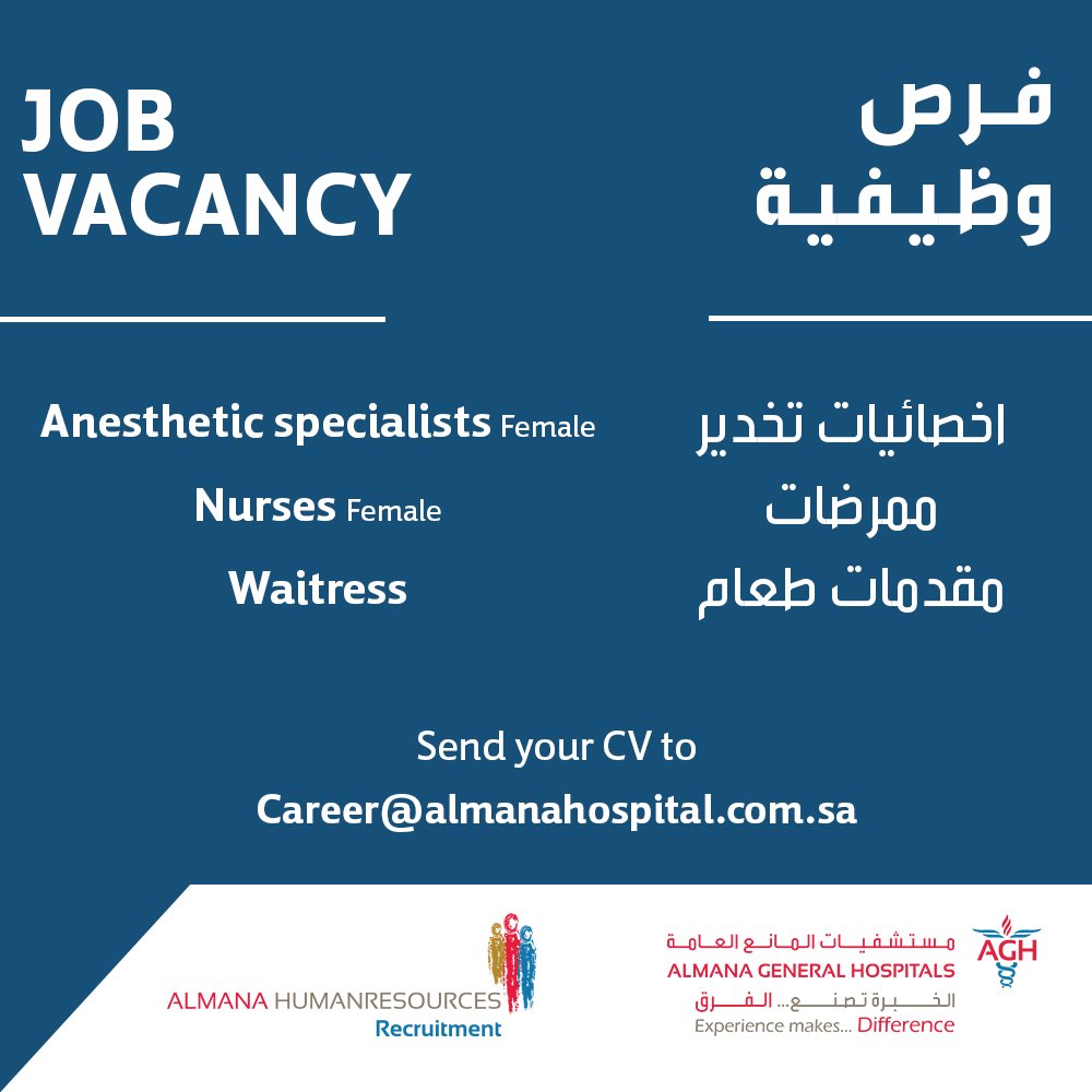 أعلنت شركة مجموعة مستشفيات المانع، عن وظائف شاغرة للنساء، للعمل بفروع المستشفى في المنطقة الشرقية.