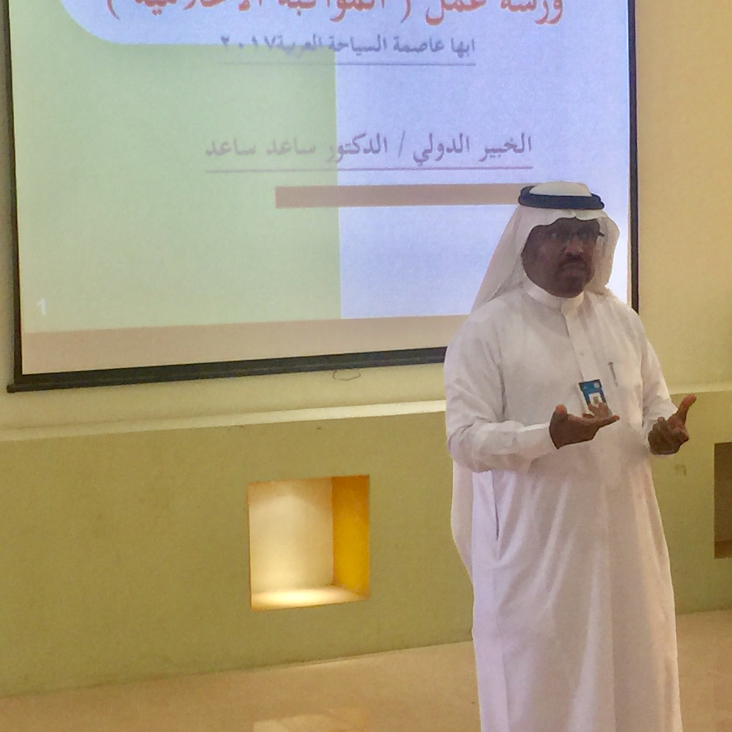 انطلقت عصر أمس الاثنين ورشة عمل المواكبة الإعلامية لمناسبة أبها عاصمة السياحة العربية والتي تستمر حتى الأربعاء خلال الفترة المسائية وذلك بعمادة خدمة المجتمع والتعليم المستمر بجامعة الملك خالد بلعصان، بحضور رئيس اللجنة الإعلامية للمناسبة المتحدث الرسمي والمشرف العام على الشؤون الإعلامية بمكتب سمو أمير منطقة عسير سعد بن عبدالله آل ثابت و عميد خدمة المجتمع والتعليم المستمر بجامعة الملك خالد الدكتور مبارك بن سعيد بن حمدان حيث أعلن بن حمدان انطلاق اعمال الورشة من خلال كلمة ترحيبية بالمشاركين بالورشة من الإعلاميين والناطقين ومن المهتمين بالجانب الإعلامي منوهاً بدور الإعلام وأهميته وخاصة في المجال السياحي مشيراً إلى ضرورة التحري والمصداقية عند كتابة الخبر واتباع التعليمات الخاصة بالنشر واختيار المواضيع التي تهم الفرد والمجتمع وعدم الركض وراء الإشاعات وتضخيم القضايا البسيطة وتطوير الذات من خلال حضور الدورات والمنتديات. عقب ذلك انطلقت الورشة التي يقدمها الأستاذ المساعد بقسم الإعلام والاتصال بكلية العلوم الإنسانية بجامعة الملك خالد بأبها الدكتور ساعد ساعد حيث بدأت بتعريف معنى السياحة ونشأتها وأنواعها ومجالاتها المختلفة وكيف يمكن تطويرها وسوف يتم مواصلة أعمال الورشة غداً وبعد غد بإذن الله.