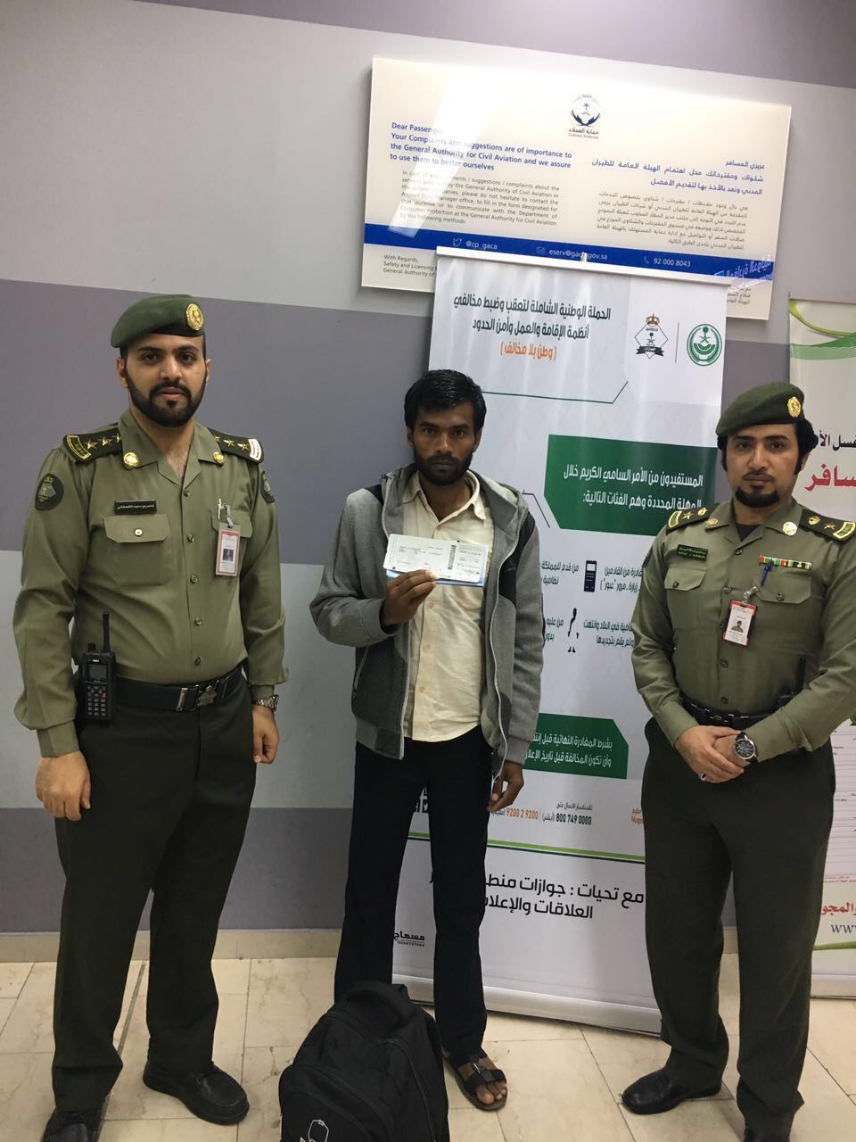 أنهت جوازات مطار أبها الإقليمي إجراءات مغادرة المخالفين المستفيدين من الحملة خلال المهلة المحددة بتسعين يوماً بدءاً من 1 / 7 / 1438 هـ والمشروطة بمغادرة المملكة مغادرة نهائية، وذلك في إطار تنفيذ الحملة الوطنية الشاملة لمخالفي أنظمة الإقامة والعمل وأمن الحدود (وطن بلا مخالف).