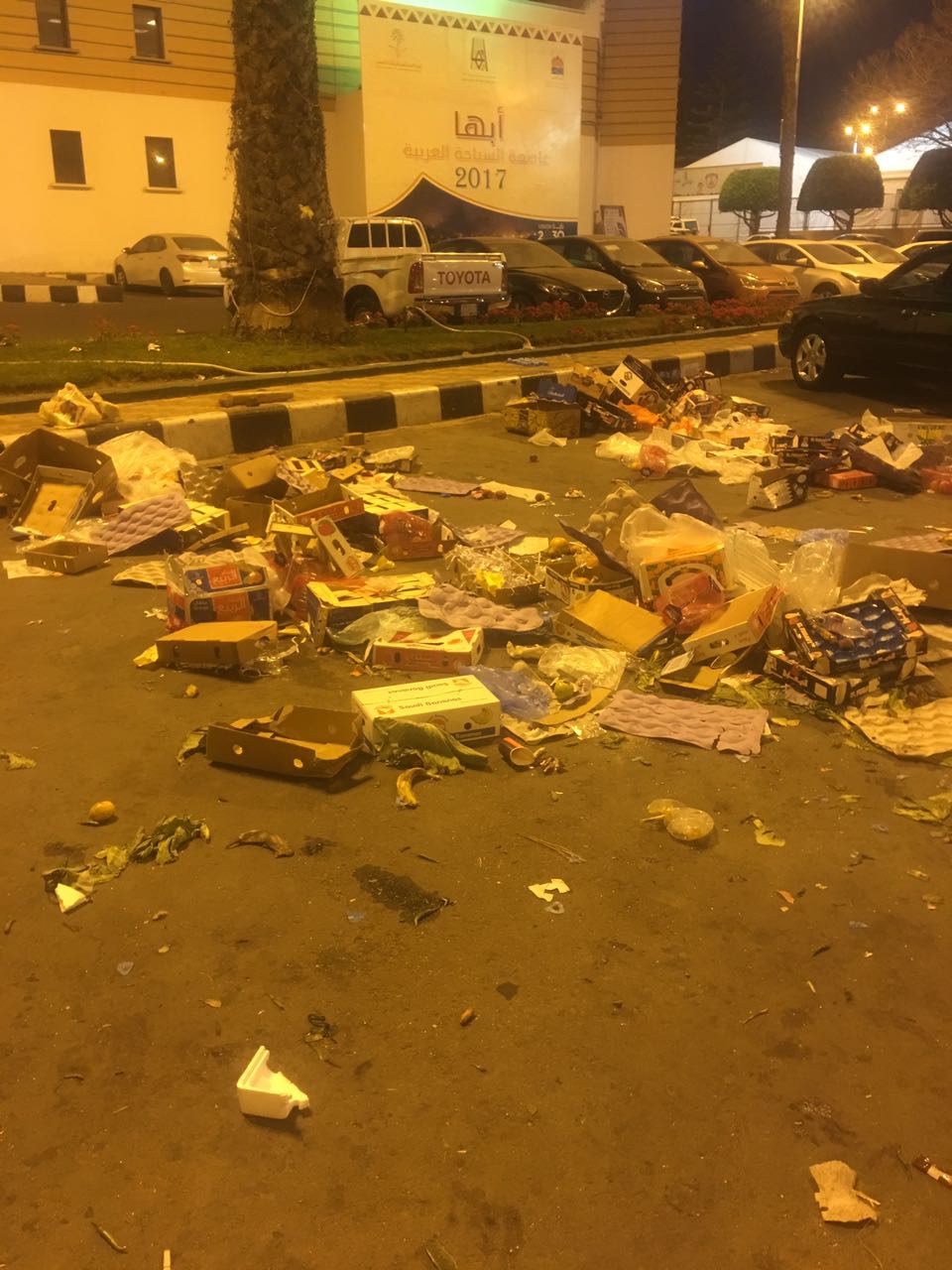 وبعد يوم تجاري حافل في أحد أشهر الأسواق التجارية الشعبية في منطقة عسير وهو سوق الثلاثاء الواقع وسط مدينة أبها خلّف بعضُ باعة الفواكه والخضراوات في الموقع القريب من سوق الثلاثاء منظراً مؤلماً بعد نهاية العمل، إذ تناثرت بشكل مُحزن مخلفات البضائع غير الصالحة وغير المباعة من الخضراوات المختلفة وخصوصاً الطماطم والخضراوات كالموز والبرتقال والتمور على أرصفة السوق، دون مبالاة من بعض الباعة لنعمة الله وشكرها ودون الاهتمام بالمظهر العام؛ مما يتطلب تدخلاً عاجلاً وحازماً من الجهات ذات العلاقة وفي مقدمتها أمانة منطقة عسير تجاه هذه الظاهرة وعدم الاهتمام بنظافة الأماكن العامة من قبلهم.