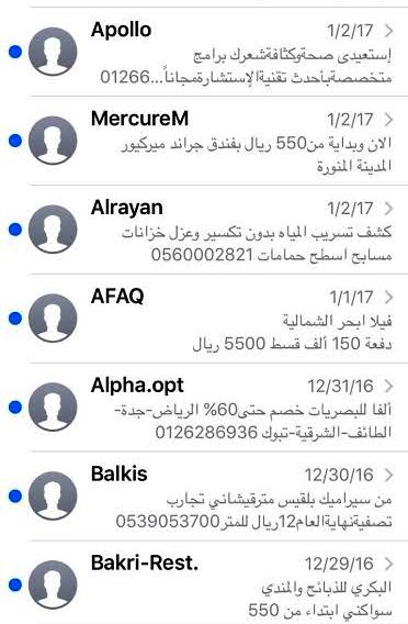 في سياق ذي صلة، أوضح سعد الزهراني، أحد المتضررين من الرسائل الاقتحامية، أنّه يصله ما يقرب من 15 رسالة بشكل شبه يومي، عن عروض أو بيانات أو معلومات، أو حتى افتتاح أسواق ومحال وصيدليات وغيرها، مشيرًا إلى فشله في وقف هذه الرسائل من خلال أكواد شركات الاتصالات.