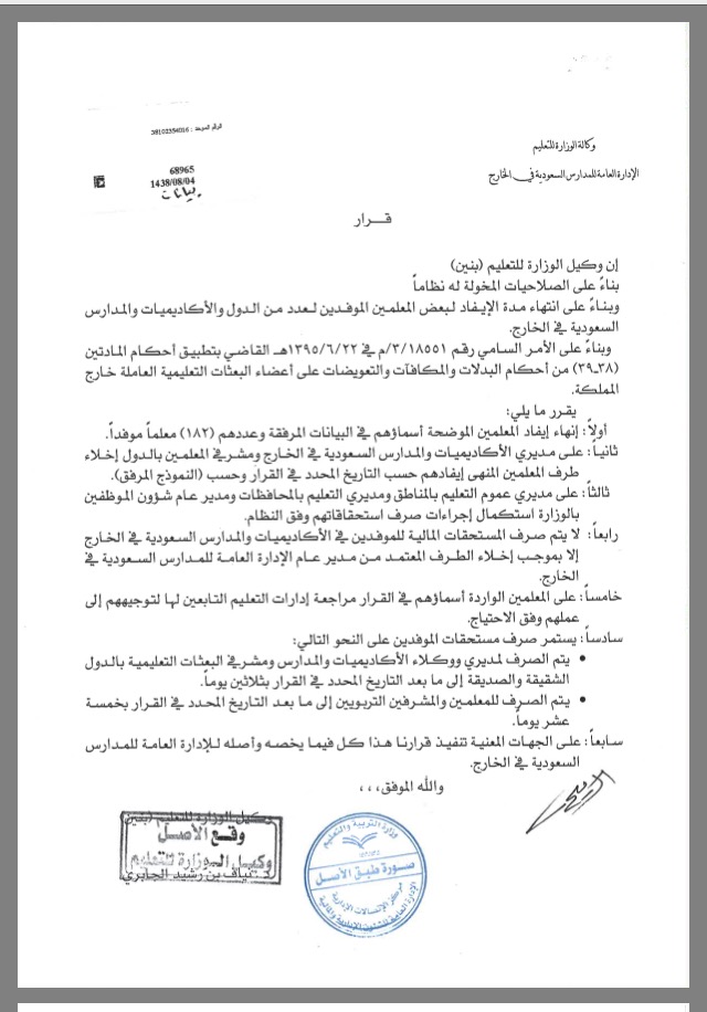 وشمل القرار 182 معلمًا، تنوّعت مقار أعمالهم، وتخصصاتهم، خارج المملكة.