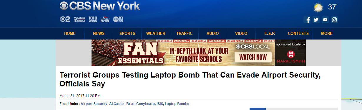 وبحسب شبكة “CBS” الأميركية، فإن مسؤولين بالاستخبارات أكدوا وجود قلق واضح حيال إمكانية نجاح التنظيمات الإرهابية، وعلى رأسها القاعدة وداعش، في تطوير إمكانية إخفاء القنابل داخل أجهزة الحاسب الآلي المحمولة، مشيرة إلى أن تلك المخاوف دفعت الإدارة الأميركية وبريطانيا لاتخاذ قرار بحظر مثل هذه الأجهزة الإلكترونية في الرحلات الجوية.