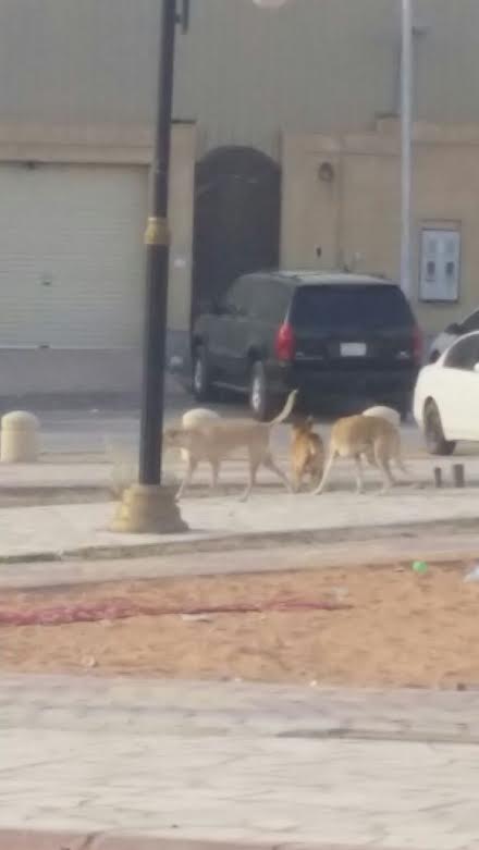 ولكن لو كنت من أهالي المنطقة فأنت بالتأكيد تعودت على هذا المشهد المفزع، بسبب عدم تدخل أمانة الرياض للقضاء على هذه الكلاب.