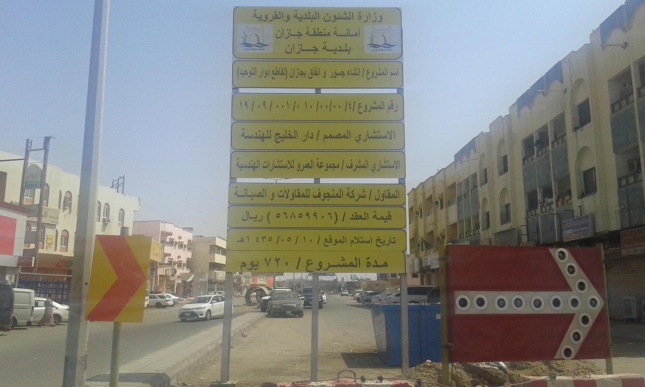 شكا عدد من أهالي منطقة جازان من تأخر إنجاز مشروع “جسر التوحيد” الذي يقع في قلب مدينة جازان، والذي تعثر إنجازه لأكثر من عام، وذلك منذ أكثر من (14) شهراً مضت بعد انتهاء المدة المحددة لإنجاز المشروع بشكل كامل، والذي بدأ العمل به قبل ثلاثة أعوام وتحديداً بتاريخ 10 /  5 /  1435هـ ومدة المشروع (720) يوماً، حيث وصلت نسبة إنجاز العمل بالمشروع ما يقارب الـ 60 بالمئة، ويحتاج لما يقارب العام لإنجازه بشكل كامل، في ظل بطء العمل به.