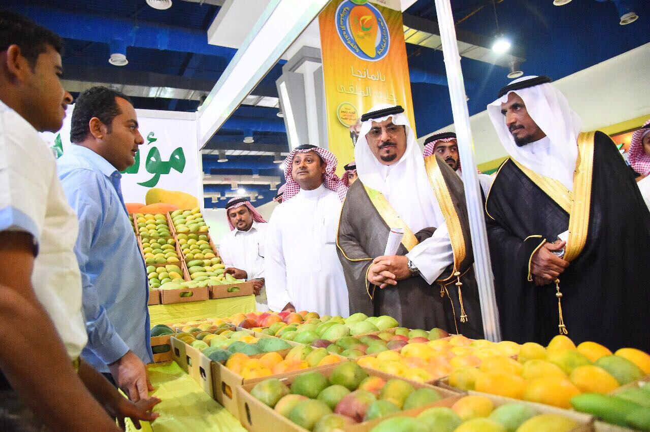 وفور وصوله، قام بقص الشريط إيذانًا بتدشين المعرض المصاحب للمهرجان، وتجول في أرجاء المعرض الذي تشارك فيه الشركات المتخصصة ومزارعي المانجو.