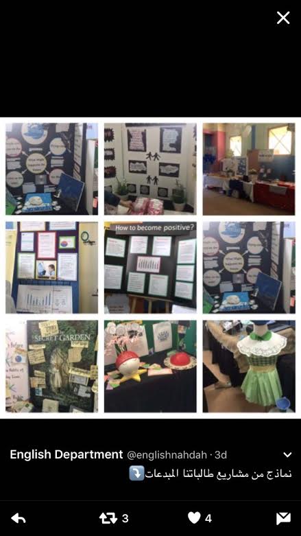 وتمّ تكريم ضاري إبراهيم العقيل، المالك لمدارس رياض نجد من مكتب النهضة، فيما شكرت عهود العنزي رئيسة وحدة اللغة الإنجليزية في مكتب تعليم النهضة مشرفات الوحدة “أنغام العلوان، علا المديهيم، منال الضويحي، نجوى البريك”، على جهودهن المتميزة لدعم الطالبات وتشجيعهن على إبراز ما لديهن من قدرات ومواهب متميزة، كما شكرت علا المديهيم على جهودها للإشراف على أوبريت “The Golden Era”، وأيضًا شكرت المعلمات والطالبات المُنفذات للأوبريت والمعرض لجهودهن في إنجاح هذا الملتقى الرائع.