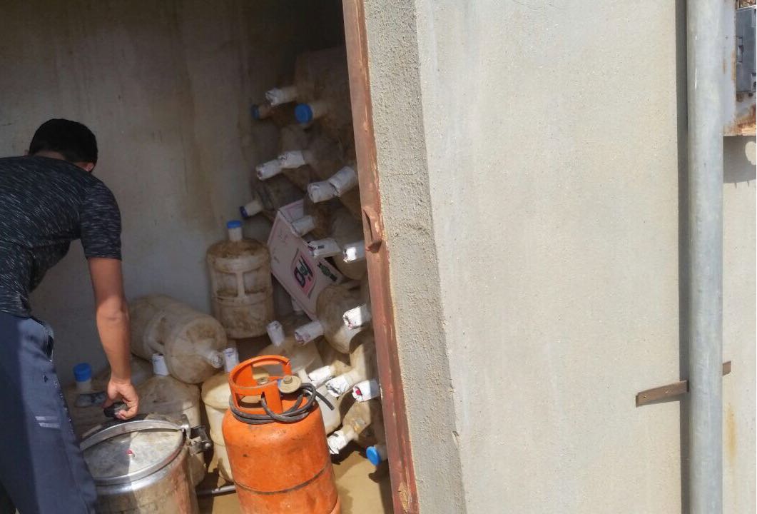 وقام رجال الأمن بمسح كامل لتلك المواقع، ما أسفر عن الكشف عن المصنعين، حيث كان الأول في إحدى الغرف المهجورة بوادي الدرب، وعثر به على 26 جركلا سعة 15 لترًا مليئة بالعرق المسكر.