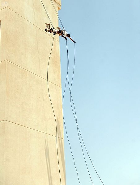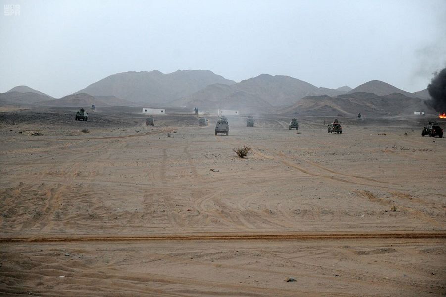 كما أعطى قائد القوات إشارة البدء للمارثون الصحراوي الذي شارك فيه عدد كبير من منسوبي القوة علما أن جميع الفرضيات طبقت باستخدام الذخيرة الحية.