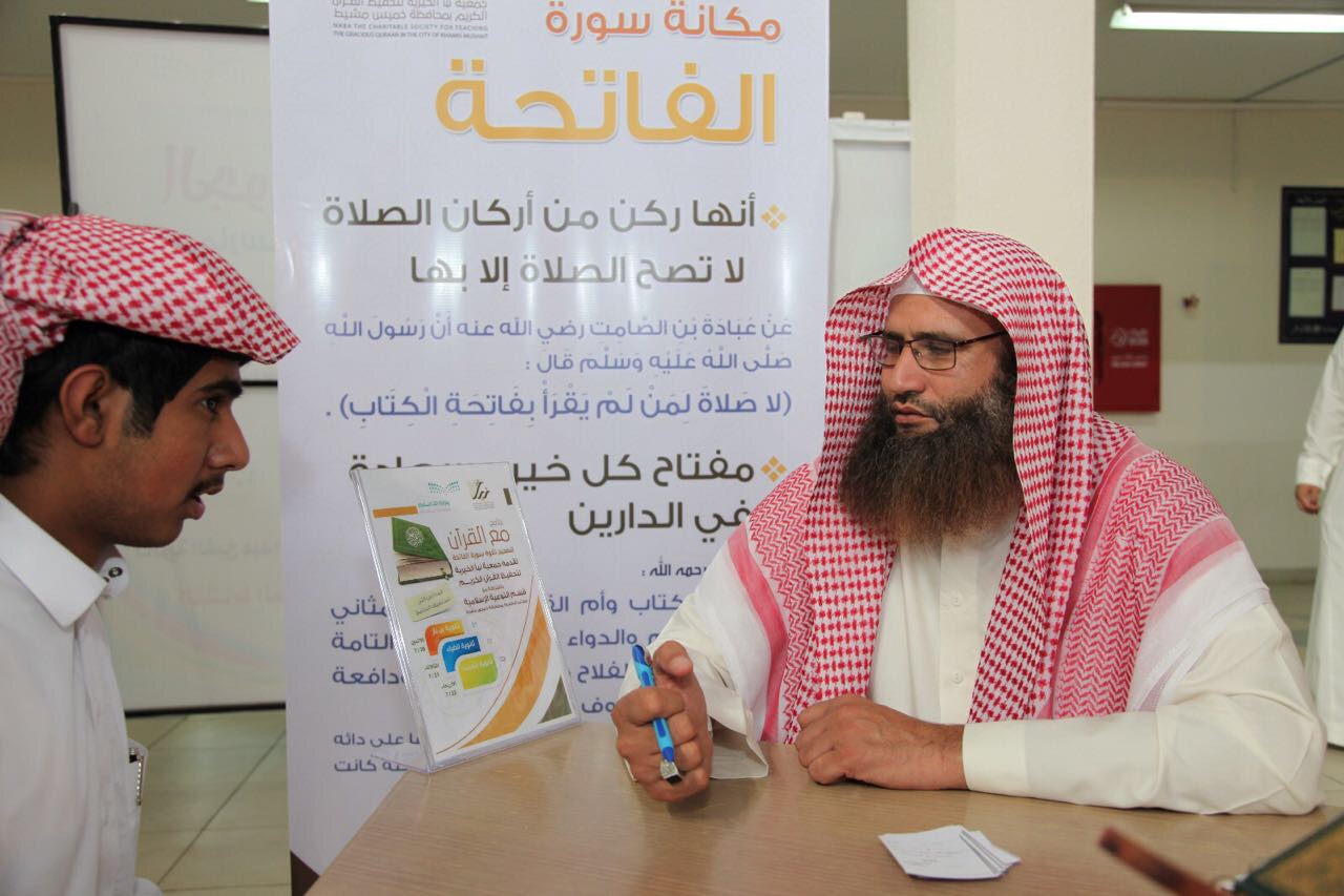 ويهدف البرنامج إلى تعليم سورة الفاتحة في العديد من مدارس الثانوية بخميس مشيط حيث تم تصحيح التلاوة لعدد من الطلاب بحضور عدد من القراء والحفاظ المتميزين.