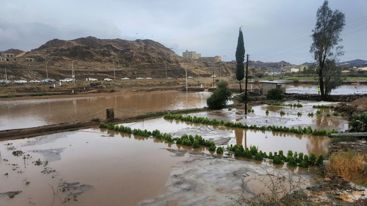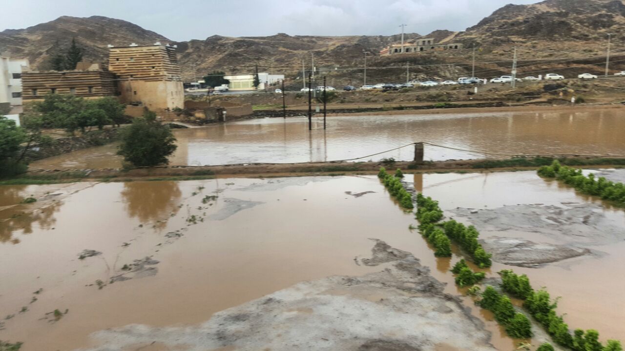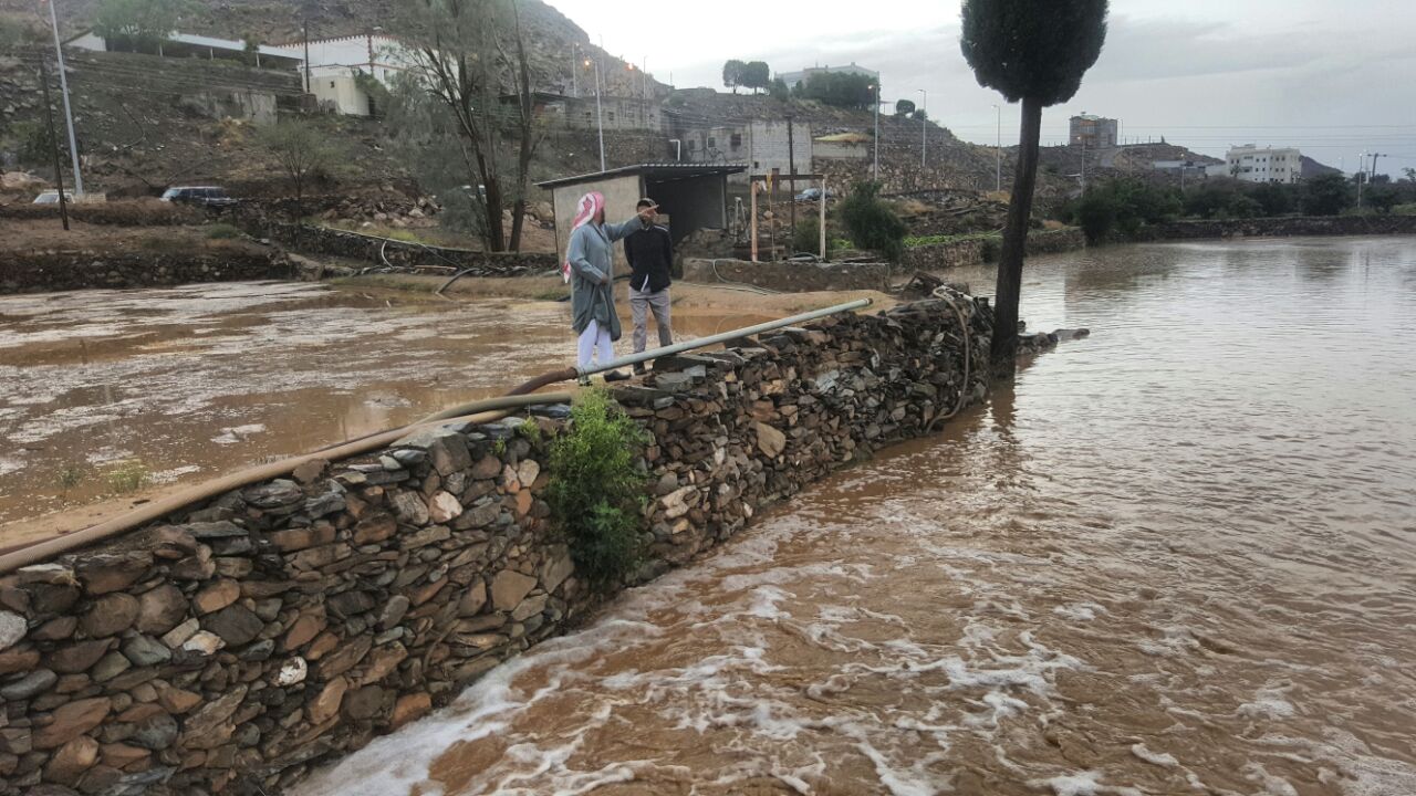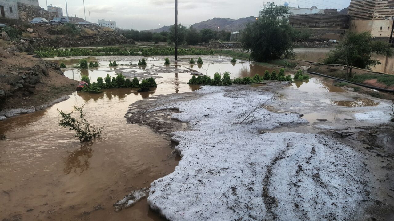 وكانت مصحوبة بكميات من البرد، سالت على إثر هذه الأمطار الأودية والشعاب وارتوت المزارع.
