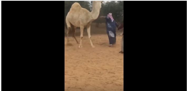 وأظهر مقطع فيديو متداول، كيف رفضت الناقة الخضوع للشخص الذي حاول الحصول على لبنها بالرغم من وجود رجال عدة معه.