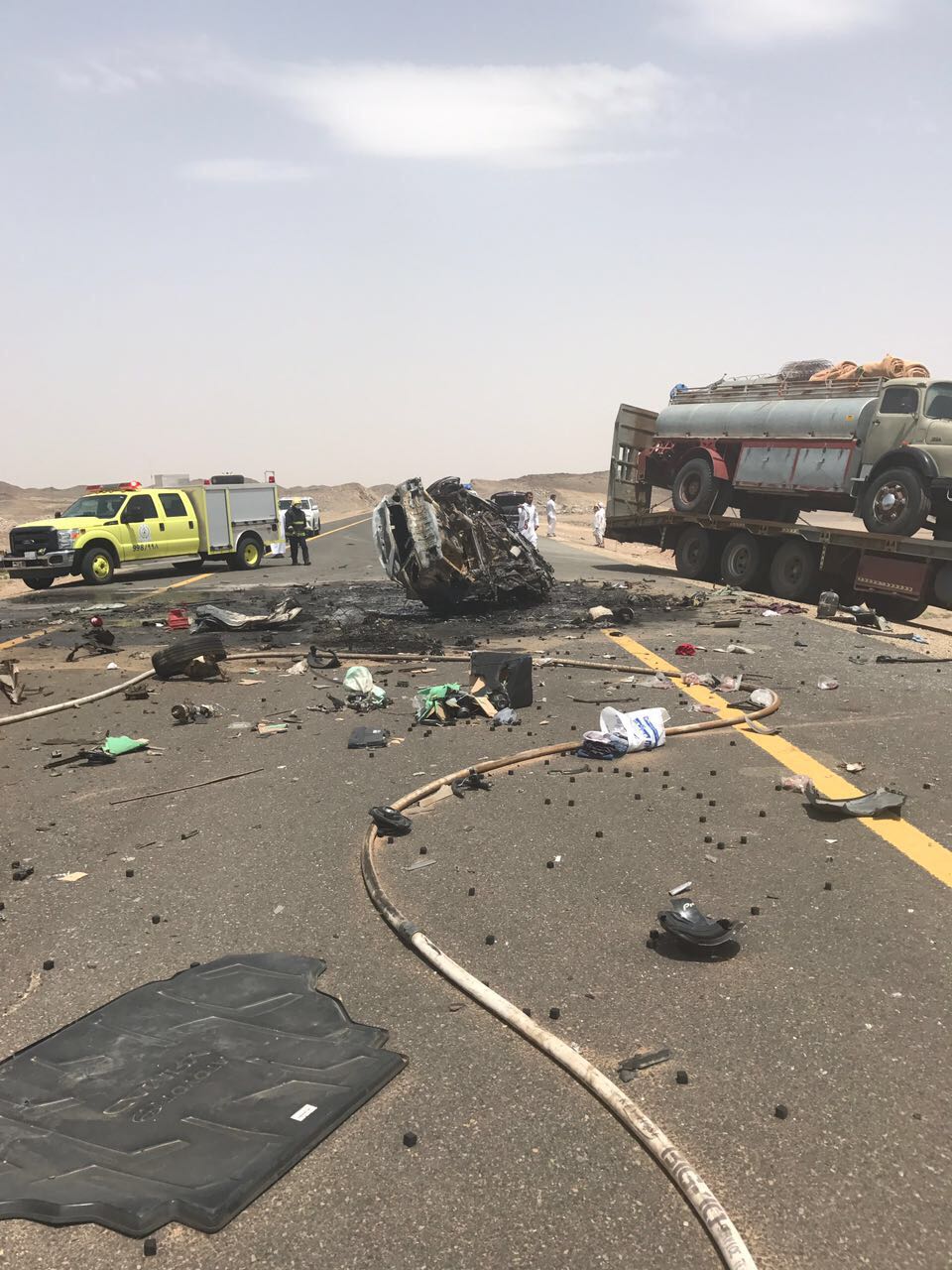 ورابعًا، عدم وجود مراكز الهلال الأحمر والدفاع المدني في مسافات كبيرة على امتداد الطريق لمباشرة الحوادث المميتة مما يتطلب انتقالهم من مسافات بعيدة عن حدوث الحوادث.