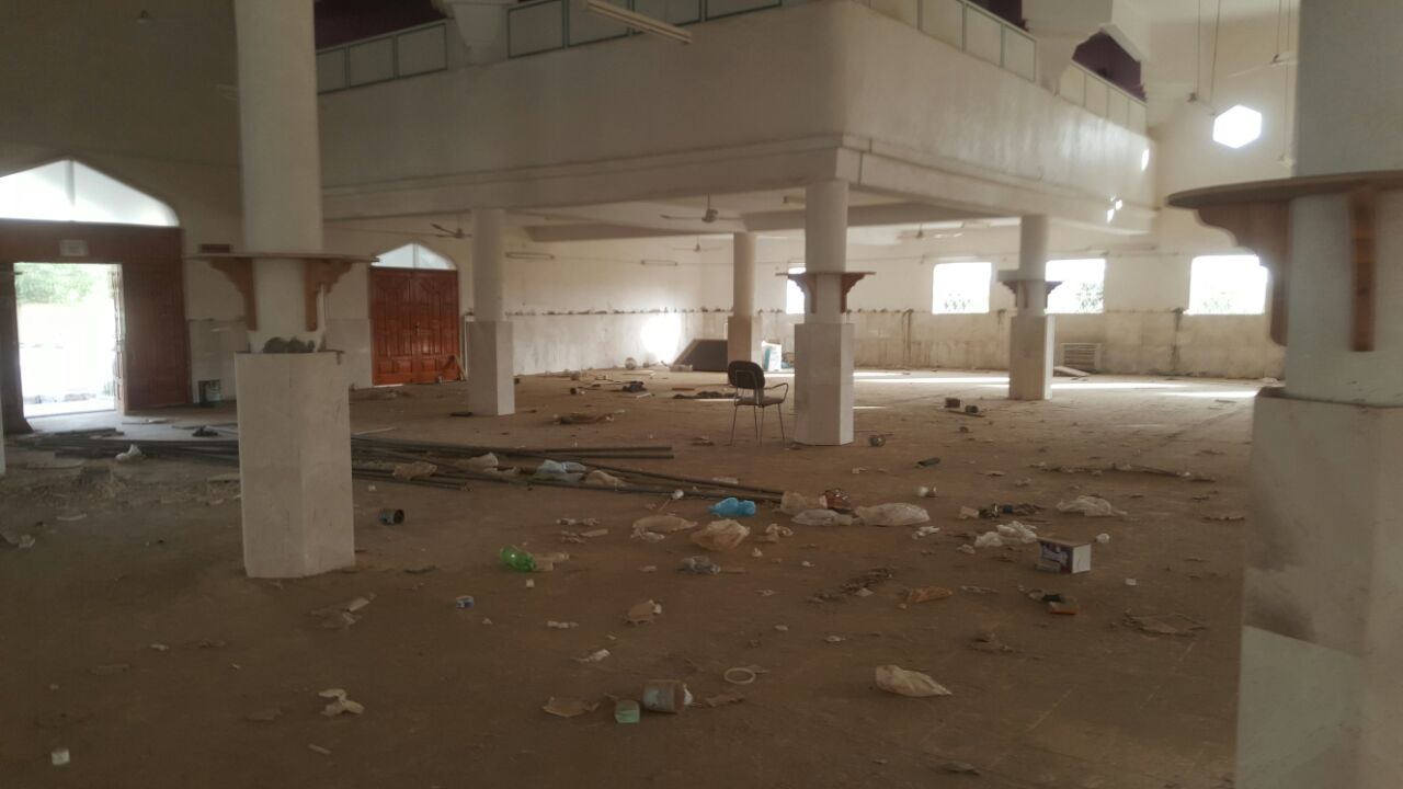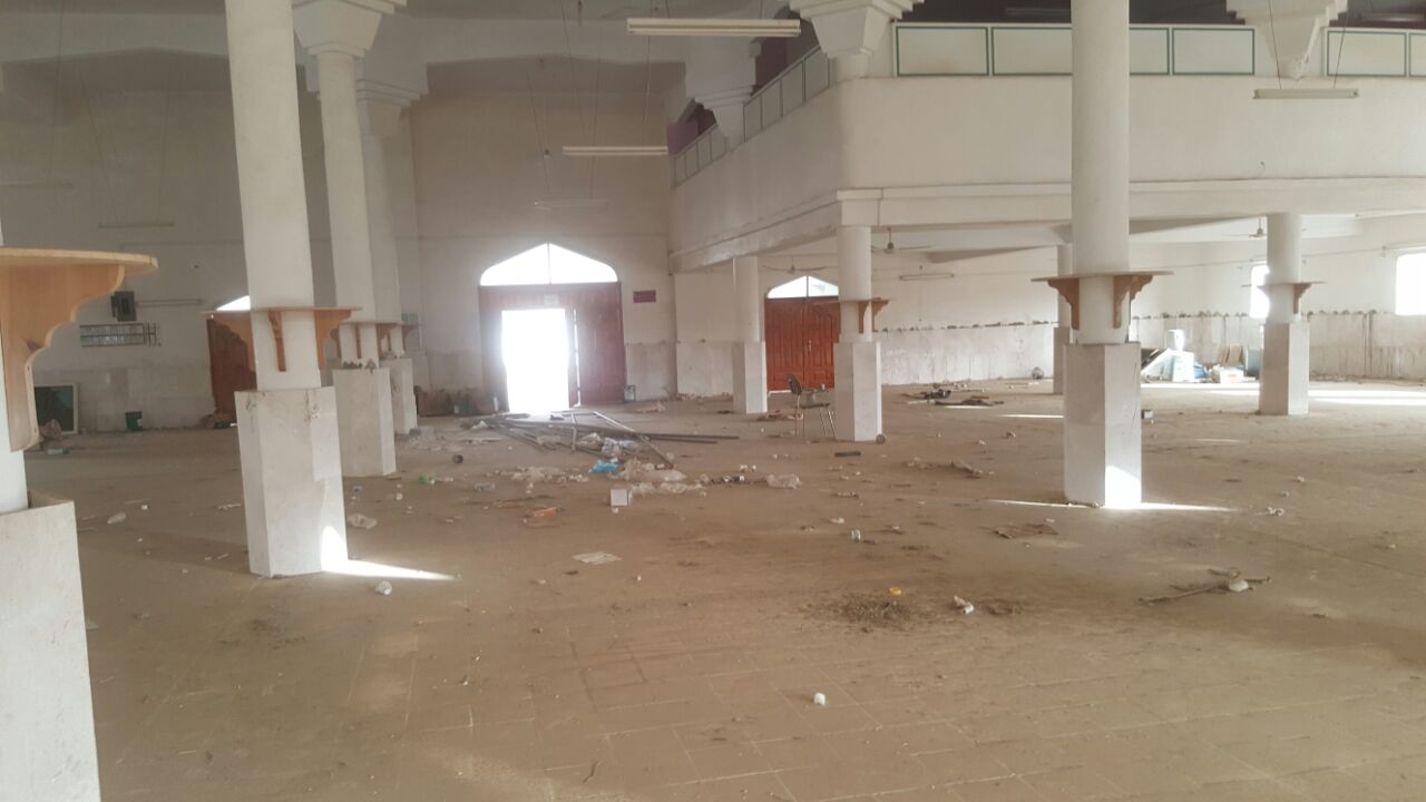 المسجد الذي يقع شمال أبها بما يقارب 130كلم، اقتلعت أبوابه وتم أيضًا إزالة جميع متعلقات المسجد من الإنارة والنوافذ ليبقي المسجد في حالة يرثى لها منذ ثلاث سنوات.