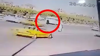 ويظهر من خلال المقطع المرأة العراقية وهي تعبر الطرق وترددت بين الإقدام والتراجع؛ مما تسبب في دهسها على الطريق.