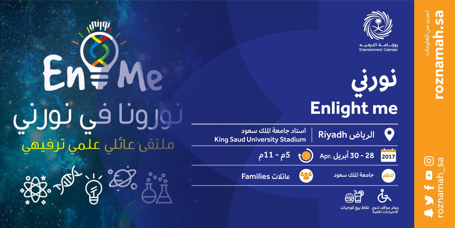 بمناسبة اليوم العالمي للحمض النووي DNA؛ تدعم الهيئة العامة للترفيه الملتقى العلمي نورني الذي تنظمه جامعة الملك سعود بالتعاون مع الهيئة، حيث يعتبر ملتقًى ترفيهياً للعائلات، وذلك خلال الفترة من 2 إلى 4 شعبان الموافق 28 إلى 30 أبريل في فضاء الاستاد الرياضي بمقر الجامعة الرئيس بالرياض.