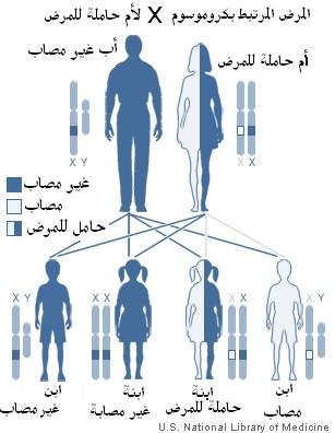 هيموفيليا (ج ) وتنتج عن قلة العامل الحادي عشر وهي اضطراب وراثي أي لا يرتبط بالصبغي إكس.