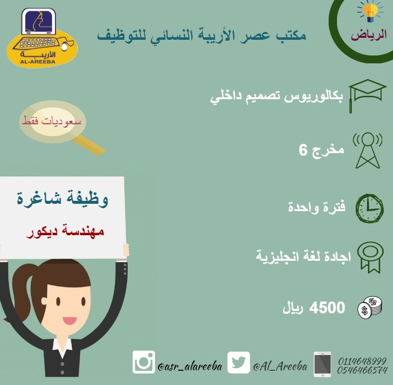 2- مهندسة ديكور: بكالوريوس تصميم داخلي، وإجادة اللغة الإنجليزية..