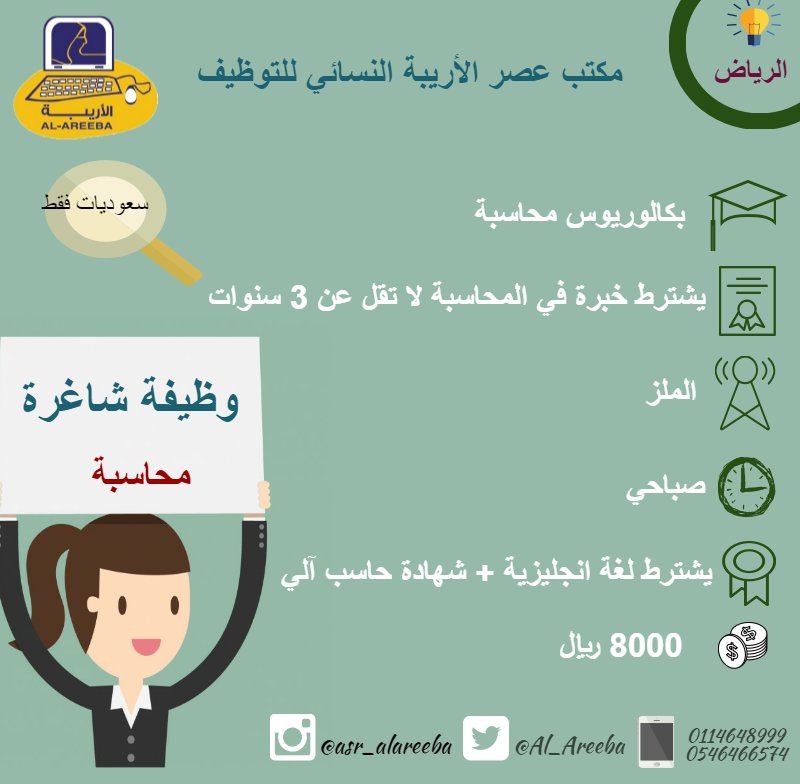 4- محاسبة: بكالوريوس محاسبة من جامعة الملك سعود، وإجادة اللغة الإنجليزية.