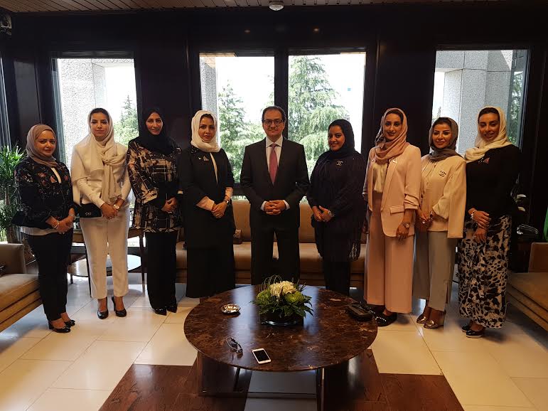 التقى صاحب السمو الأمير منصور بن خالد بن عبدالله الفرحان سفير خادم الحرمين الشريفين لدى مملكة أسبانيا، 14 شابة سعودية يمثلن المجلس التنفيذي لشابات أعمال غرفة المنطقة الشرقية في زيارتهن الرسمية لأسبانيا من أجل الاطلاع على قوانين الاستثمار الأسباني، وأهم المنشآت الأسبانية المهتمة برائدات الأعمال، وذلك في إطار النهوض بدور المرأة السعودية في قطاع الأعمال وفق رؤية المملكة 2030.