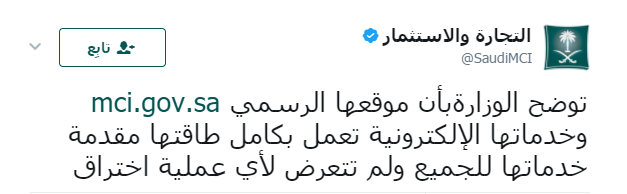 نفت وزارة التجارة والاستثمار تعرض موقعها الرسمي للاختراق، وذلك بعد تداول أنباء تفيد بتعرض موقعها الإلكتروني للاختراق.