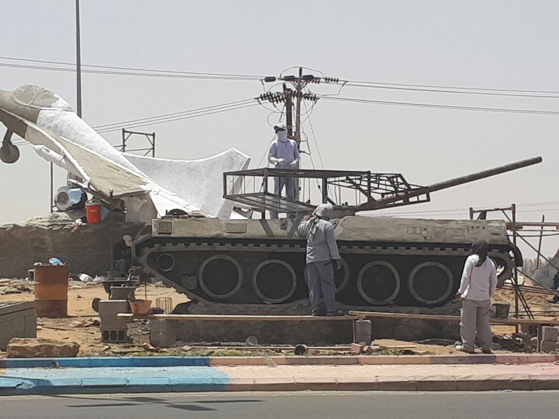 وأضاف الكيلاني: أن هذا الدوار يمثل عاصفة الحزم ويوجد به مجسمات جميلة جداً مثل “دبابة” وطائرة إف 15 “وأتمنى عدم هدمة كاملاً بل العناية به وتزيينه.