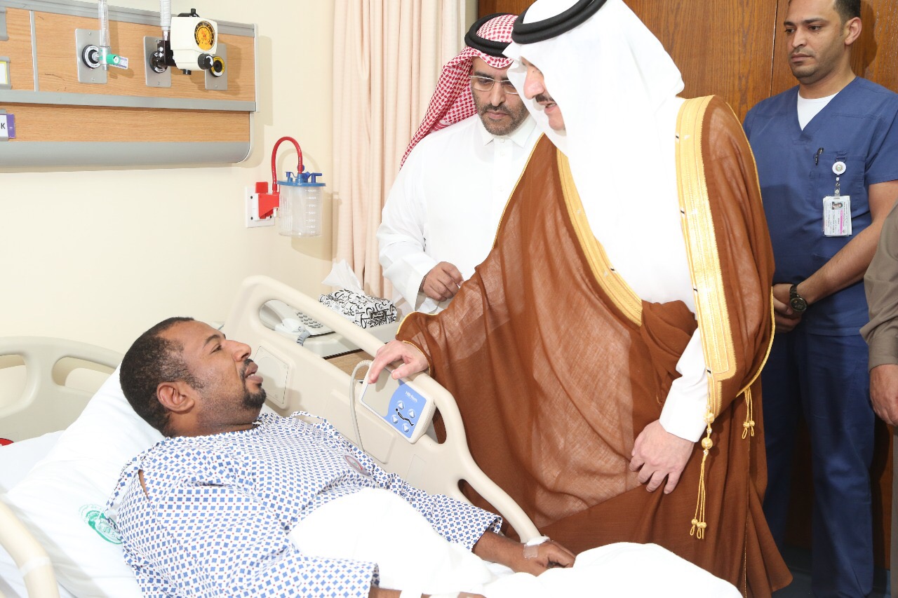 ‎ونقل سموّه للمصابين تمنيات خادم الحرمين الشريفين الملك سلمان بن عبدالعزيز آل سعود، وسمو ولي عهده الأمين، وسمو ولي ولي العهد – حفظهم الله – للمصابين بالشفاء العاجل، وأن يمنّ عليهم بالصحة والعافية.