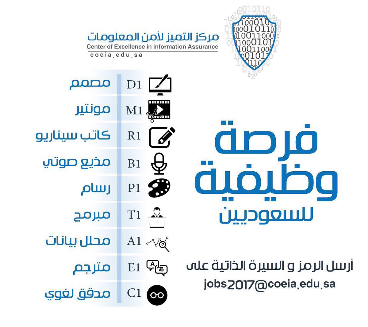 وظائف شاغرة بمركز التميز لأمن المعلومات في الرياض