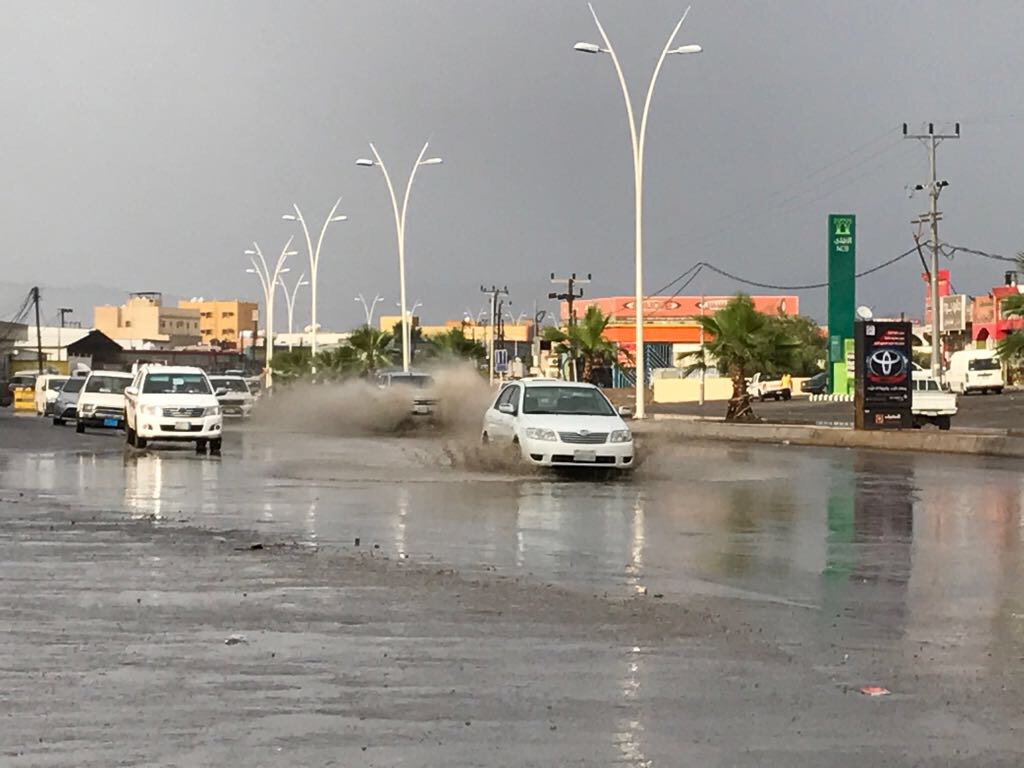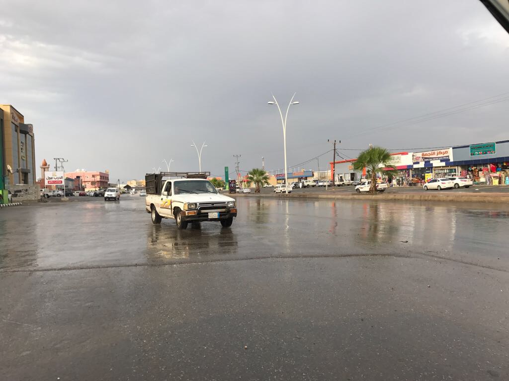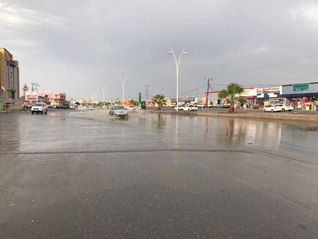وبدأت الأمطار بالهطول، قرابة الثالثة عصرًا، واستمرت إلى قبيل المغرب، حيث امتلأت الشوارع بالمياه، جعلها الله أمطار خير ورحمة.