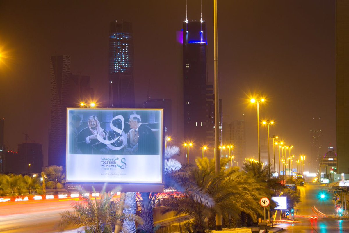 وتسابقت مباني الرياض الشامخة في تقلد عقود المصابيح المضيئة المطرزة بأبهى الألوان، التي زادت من جمال ليل الرياض الباهر، لتجسد مواقف المملكة العربية السعودية الدائمة والثابتة وحرصها الصادق والأكيد على رعاية الأمن والسلم وحفظ السلام، وعملها الدؤوب مع الأشقاء والأصدقاء في شتى بقاع المعمورة لكل ما فيه خير وسعادة ورقي وتقدم وخدمة الإنسانية.