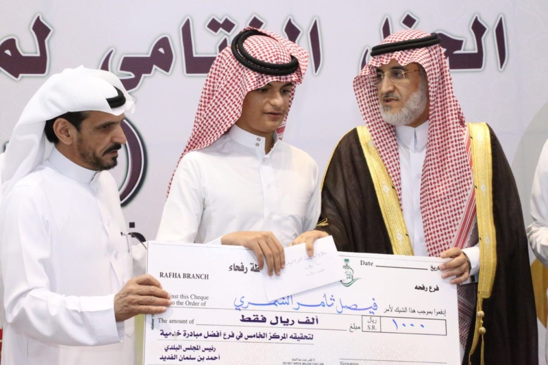 أقام المجلس البلدي برفحاء، مساء أمس الأربعاء، الحفل الختامي لمسابقة المجلس البلدي (شركاء)، وذلك بحضور محافظ رفحاء بدر بن إبراهيم الهزاع وعدد من المسؤولين بالمحافظة.