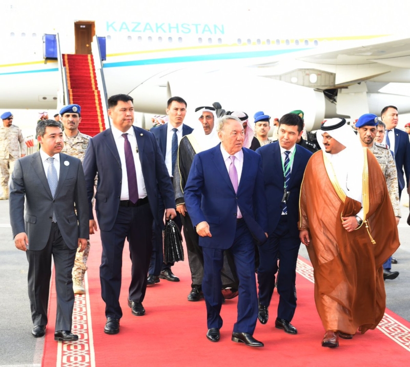 وأيضًا، وصل رئيس جمهورية كازاخستان، نور سلطان نزارباييف، للمشاركة في القمة العربية الإسلامية الأميركية.