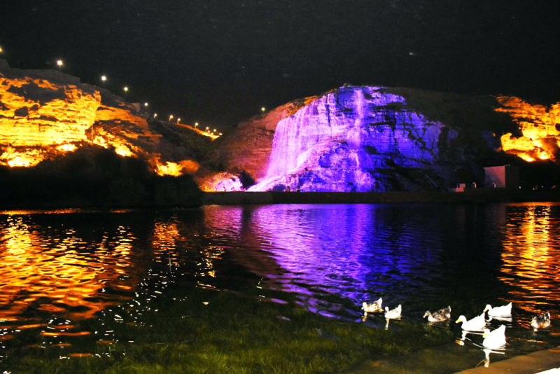 وفي هذه الأثناء، اطلع على معرض مصغّر عن مكونات المشروع، وأزاح الستار عن اللوحة التذكارية للمشروع، وقام بضغط زر تشغيل الشلال الذي أقيم في الموقع لتصب مياهه من أعالي الوادي نحو بحيرة سد نمار بسعة مياه تبلغ 400 لتر في الثانية.