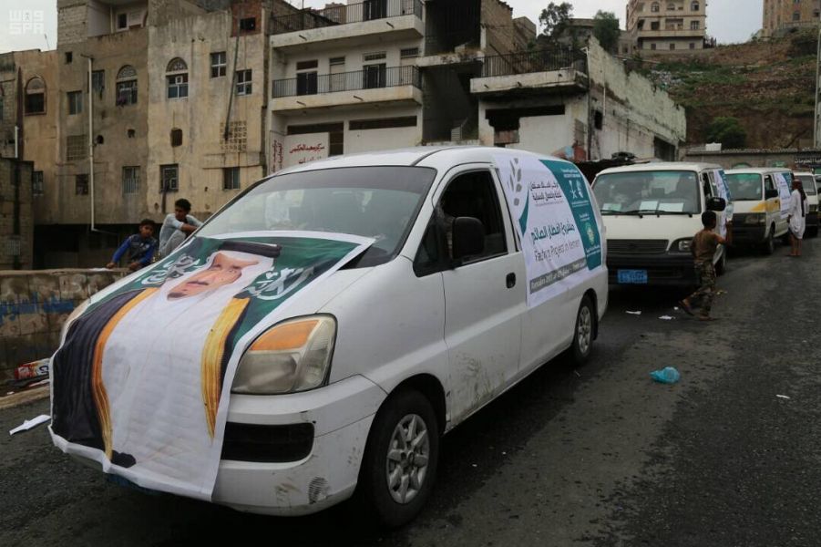بالصور.. مركز الملك سلمان للإغاثة يوزع 54 ألف وجبة إفطار في تعز