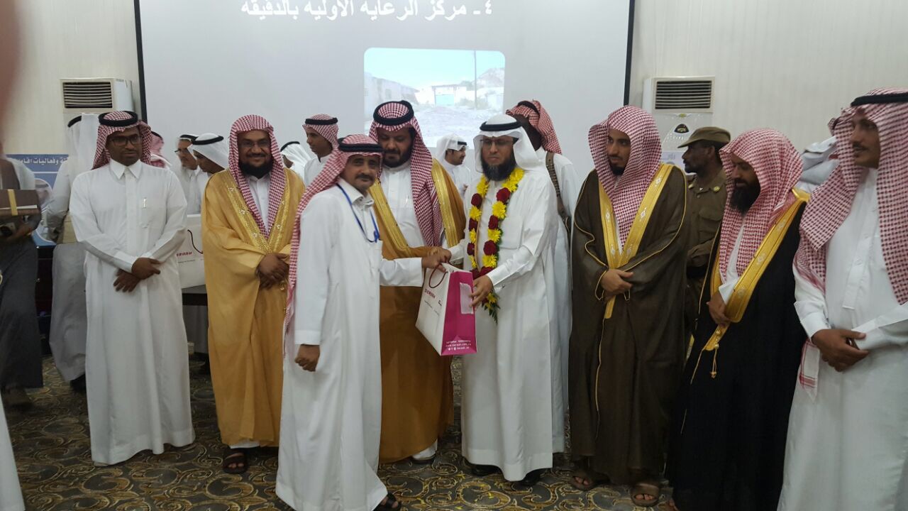 وسلم محافظ العارضة نايف بن ناصر بن لبدة، ووكيل المحافظة الدكتور خفير بن زارع العمري ومديرو الإدارات الحكومية ومنسوبو الصحة بالمحافظة، اللغبي دروعًا وهدايا تذكارية؛ تقديرًا لما قام به من جهود طوال فترة عمله بالقطاع الصحي.