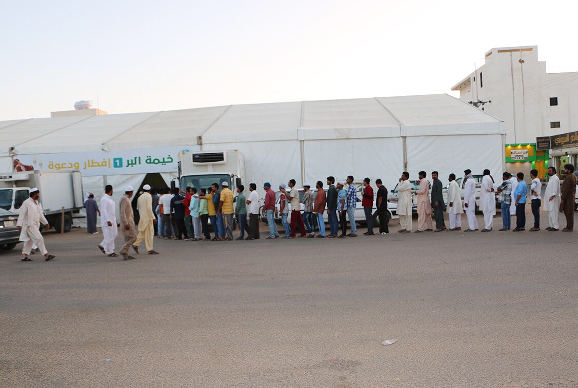 وتمتد موائد الإفطار كذلك على طريق المسافرين على الخط الدولي الرابط بين السعودية واليمن، وإذا ما انتقلت إلى وسط المدينة تجد خيمة أخرى، يقصدها الصائمون، ذات تكييف يبرد وهج الصحراء، وعندما يحين وقت الإفطار ترتفع الأكف بالدعوات وتلهج الألسن بالثناء لكل من ساهم في هذا المشروع.