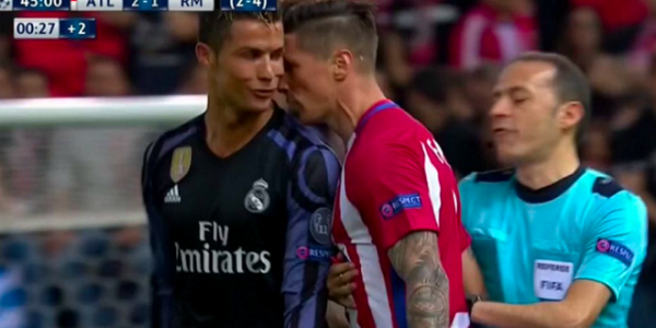 سلطت وسائل الإعلام الإسبانية الضوء على المشادة التي وقعت بين فرناندو توريس وكريستيانو رونالدو، نجمي أتلتيكو مدريد وريال مدريد، خلال مباراة الفريقين أمس الأربعاء، التي انتهت بفوز الأتلتي 2-1 في إياب نصف النهائي لدوري أبطال أوروبا، واعتماداً على لغة الشفاه، ذكرت صحيفتا «ماركا» و«آس» الإسبانيتان أن توريس قال لرونالدو: (ماذا بك يا مهرج؟)، ليرد عليه البرتغالي (عد إلى بيتك أيها الأحمق) وبعدها انهال توريس بالسباب على رونالدو، قبل أن يتدخل الحكم التركي، كونيت تشاكير، للفصل بين اللاعبين قبل أن يتطور الأمر إلى اشتباك بالأيدي، ولم يشفع الانتصار لأتلتيكو مدريد، بسبب فوز الريال ذهابًا بثلاثية نظيفة سجلها رونالدو بملعب سانتياغو برنابيو، ليتأهل بذلك الفريق الملكي لملاقاة يوفنتوس للمرة الثانية في نهائي البطولة بعد نسخة 1998.