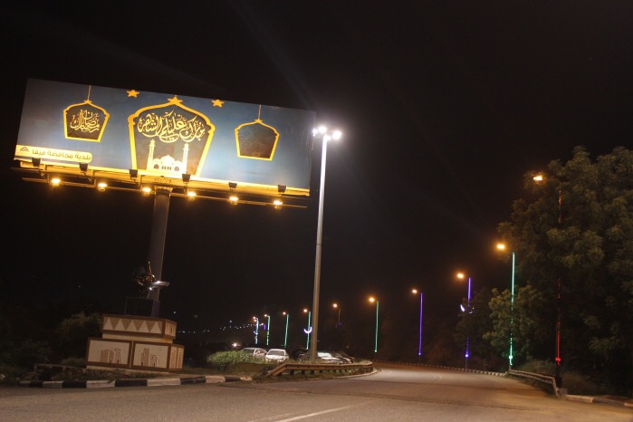 كما تمت إنارة شوارع المحافظة بكشافات وفوانيس زينة والعشرات من اللوحات الترحيبية بشهر رمضان، وقد تم تركيب 100 لي زينة LED و800 لمبة LED شبك زينة عدد 300 زينة هلاليات رمضان.