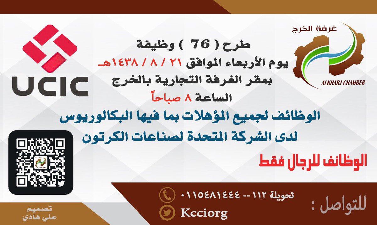 وأوضحت الغرفة، أنّ الوظائف لجميع المؤهلات بما فيها البكالوريوس، لدى الشركة المتحدة لصناعات الكرتون.