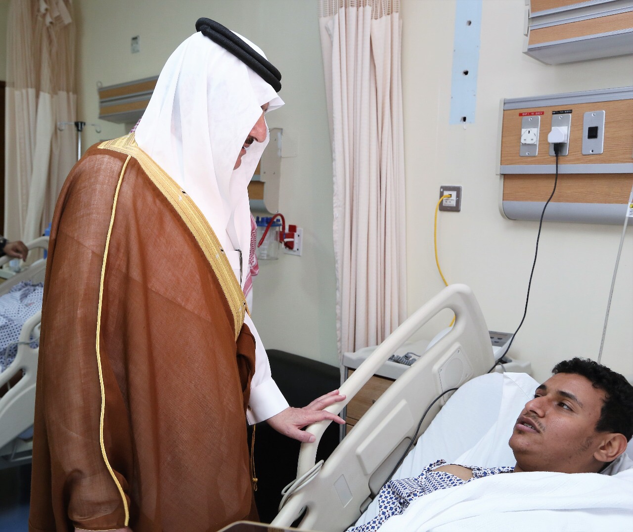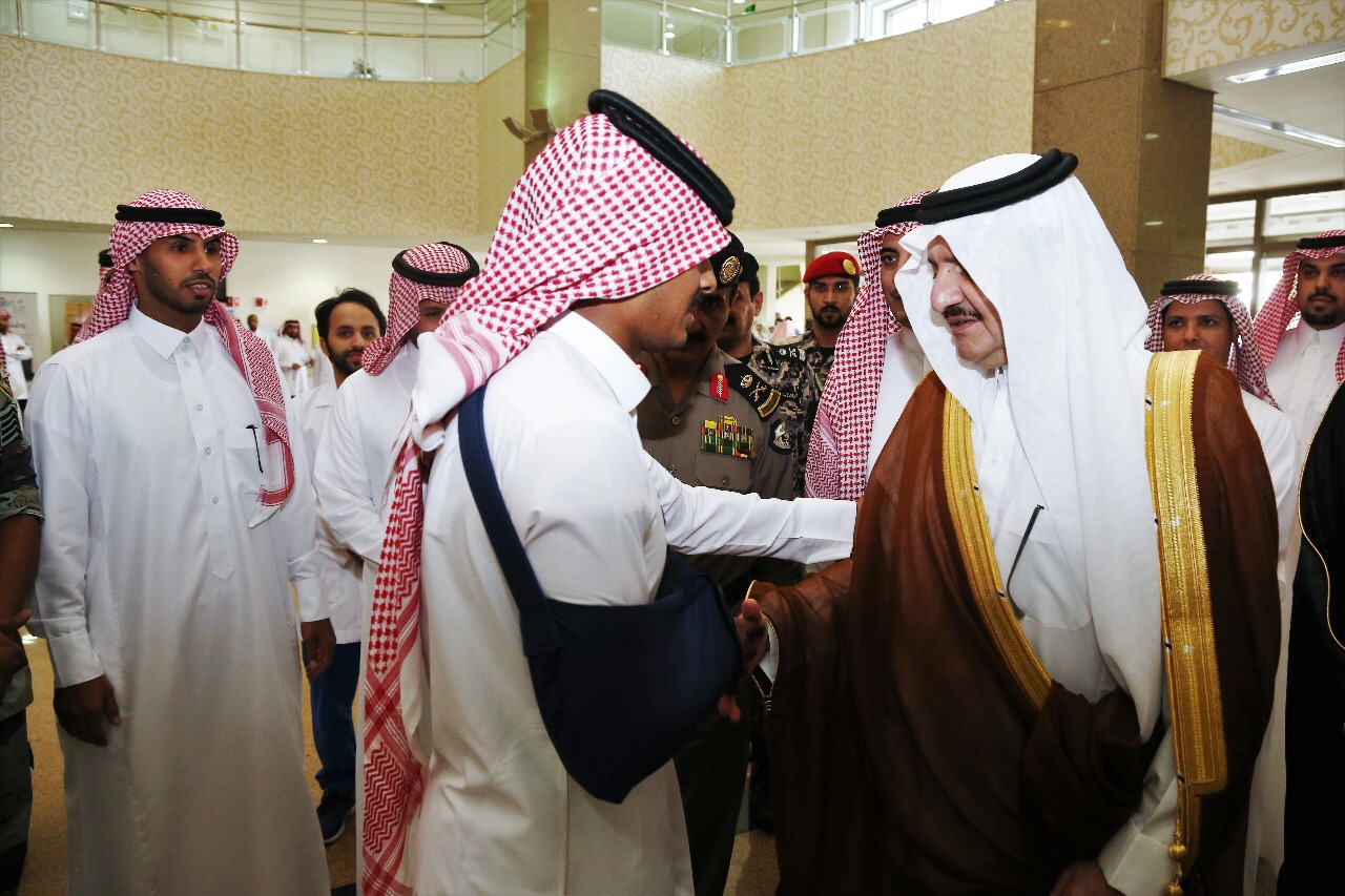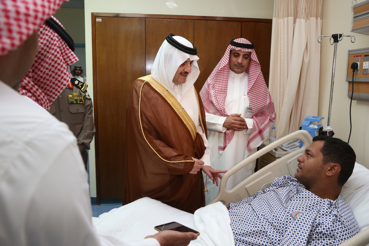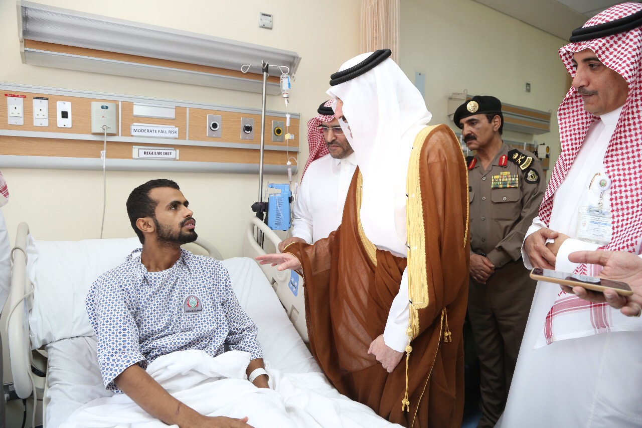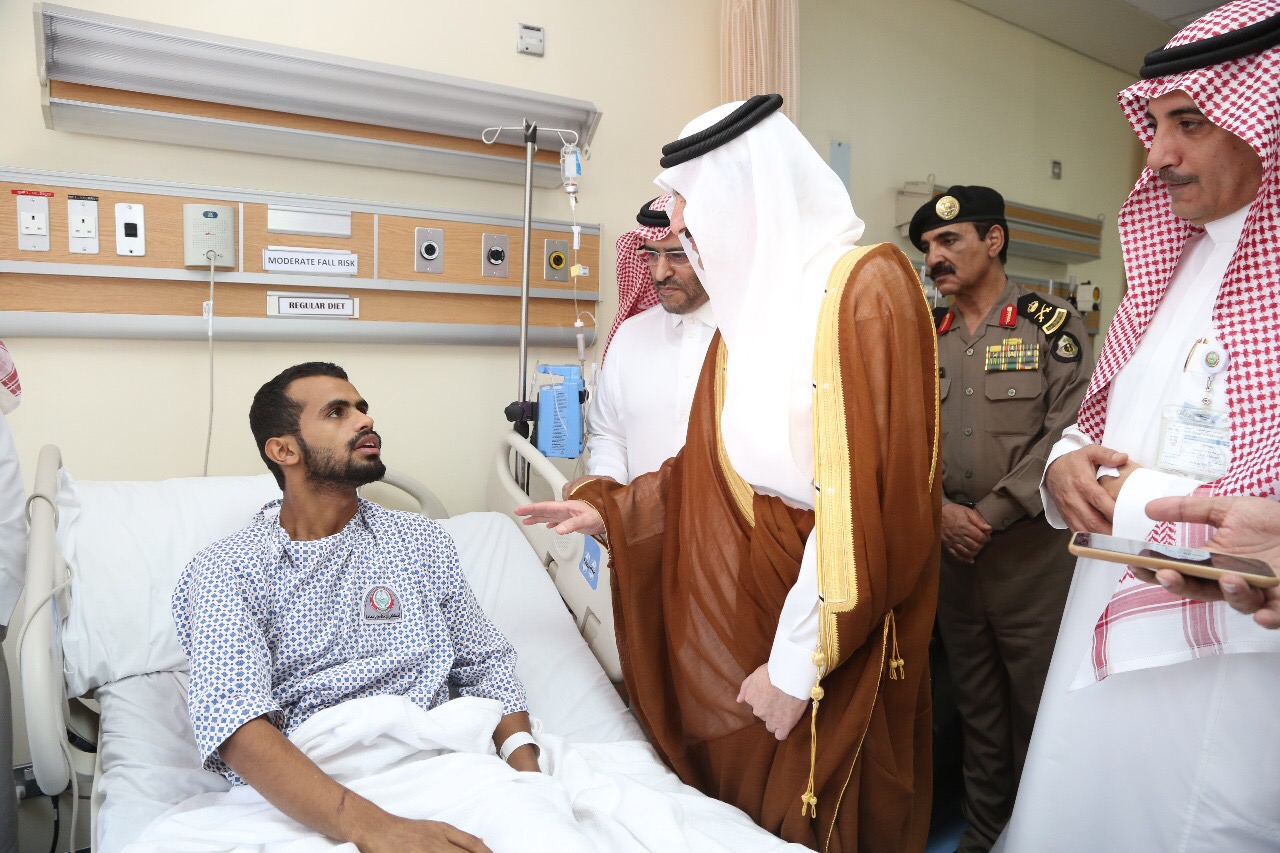 ونقل سموّه للمصابين تمنيات خادم الحرمين الشريفين الملك سلمان بن عبدالعزيز آل سعود، وسمو ولي عهده الأمين، وسمو ولي ولي العهد – حفظهم الله – للمصابين بالشفاء العاجل، وأن يمنّ عليهم بالصحة والعافية.