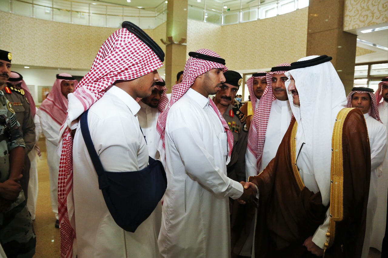 من جانبهم أعرب رجال الأمن عن شكرهم لأمير المنطقة على زيارته لهم والاطمئنان على صحتهم، مؤكدين أنهم على أتم الاستعداد للرجوع إلى الميدان بعد إكمال العلاج للتصدي للإرهابيين والقيام بدورهم المناط بهم لحفظ الأمن في الوطن الغالي علينا جميعاً، معتبرين إصاباتهم وسام شرفٍ يعتزون به.