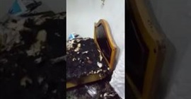 وثق شاب عبر مقطع فيديو، تفحم أثاث غرفته، بعد أن انفجرت بطارية هاتفه الجوال داخلها.