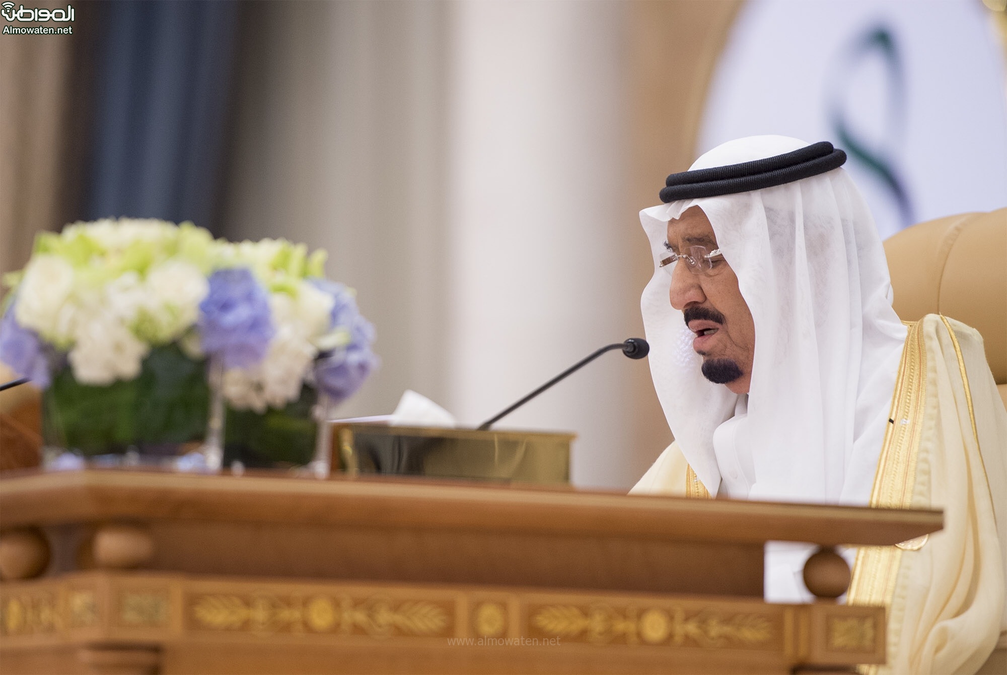 وإننا إذ نتقدم بالشكر والتقدير لفخامته لاستجابته للحضور والمشاركة في هذه القمة لنؤكد سعادتنا وامتناننا باختياره بلادكم المملكة العربية السعودية وقمتكم هذه كأول رحلة ومشاركة خارجية لفخامته مما يعكس ما يوليه فخامته وبلاده من اهتمام في قمتكم المباركة، كما نؤكد في الوقت ذاته أننا نبادله نفس المشاعر السامية في التعاون البناء لنبذ التطرف والعمل على مكافحة الإرهاب بكافة صوره وأشكاله وتجفيف منابعه وإيقاف كل سبل تمويله أو نشره والوقوف بحزم في التصدي لهذه الآفة الخطيرة على الإنسانية جمعاء .