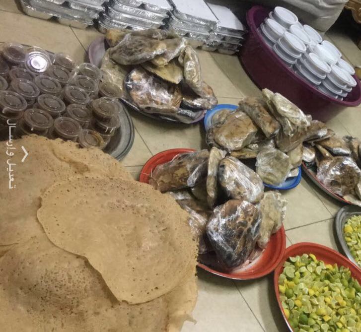 وذكرت أن وجبات الإفطار تعد يوميًّا في منازل المتطوعات، وتتكون من (الأكلات الشعبية الجازانية)، كما يبلغ عددها أكثر من ١٥٠وجبة يوميًّا.