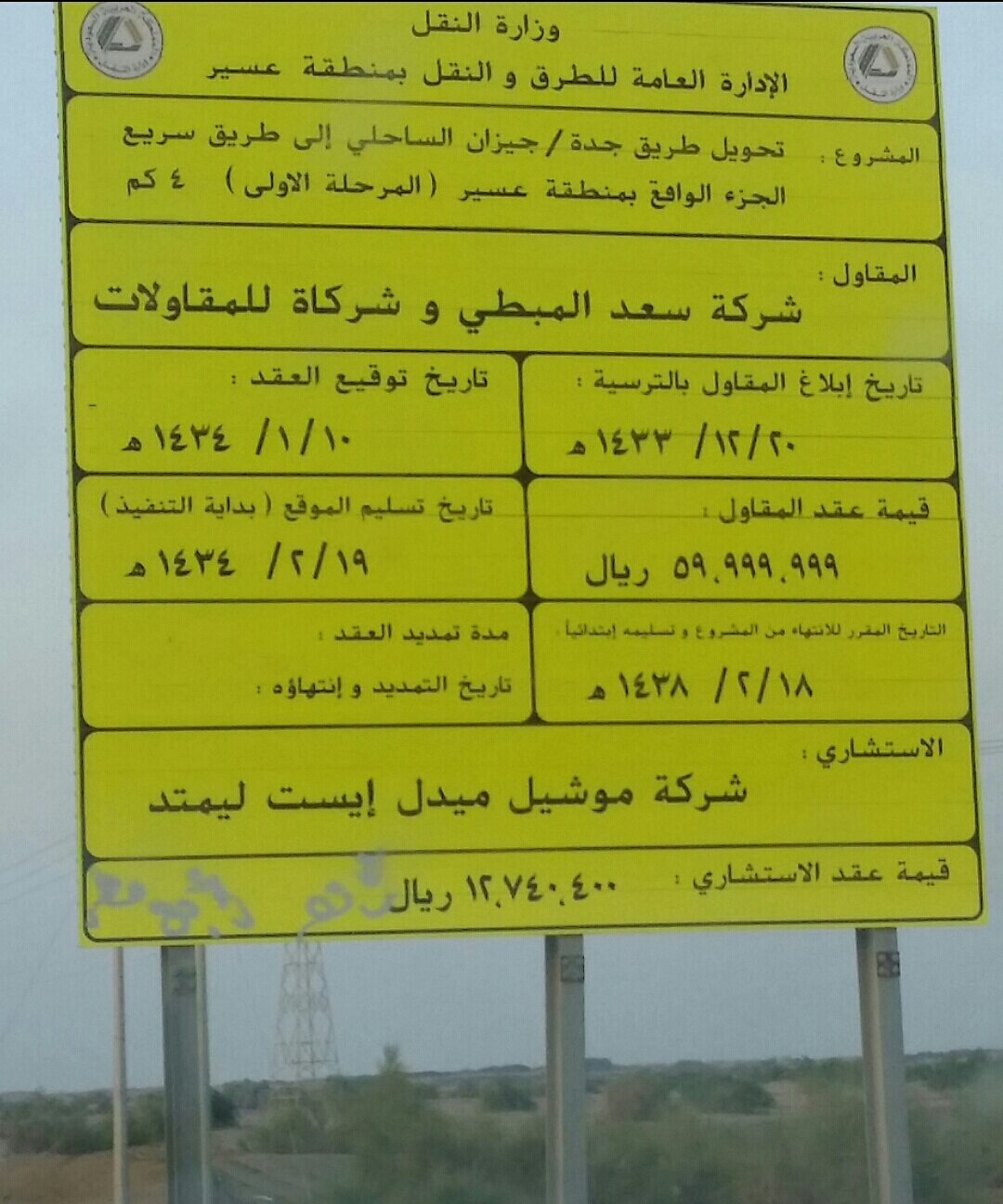 كما أنّ استلام المشروع من قبل الشركة المنفّذة كان بتاريخ 19/ 02/ 1434هـ وهو بداية التنفيذ، وماطلت بالعمل فيه ولم تبدأ إلا بعد عام من تاريخ تسليم الموقع؛ ومن ثم توقف لفترات طويلة؛ لعدم وجود استشاري، والذي تبلغ قيمة عقده 12 مليونًا.
