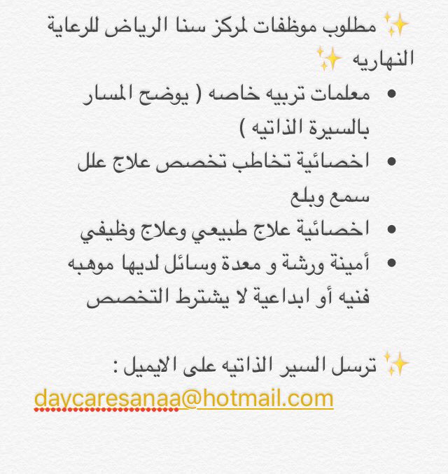 ابي وظيفه ف اي مدرسه او مركز نسائي الله يسسعدكم. اللي يقدر يساعدني يفيدني