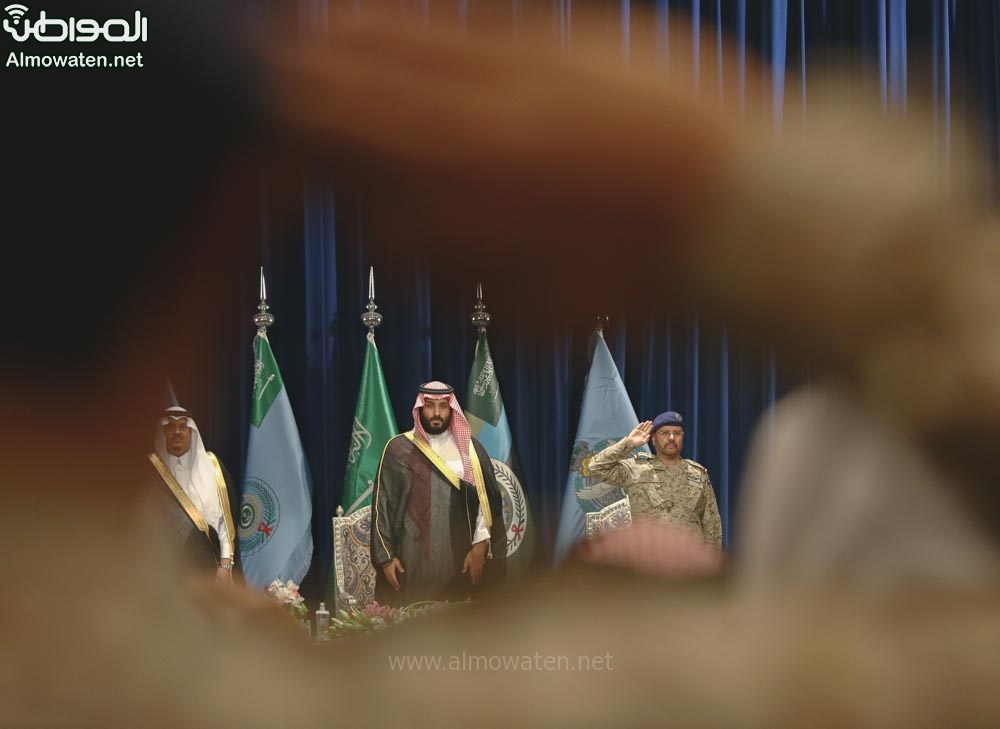وفي حفل تخرج طلاب كلية القيادة والأركان ، ومع وصول الأمير محمد بن سلمان، عزف السلام الملكي، وبعدها بدأ الحفل الخطابي المعد بهذه المناسبة، بتلاوة آيات من القرآن الكريم.