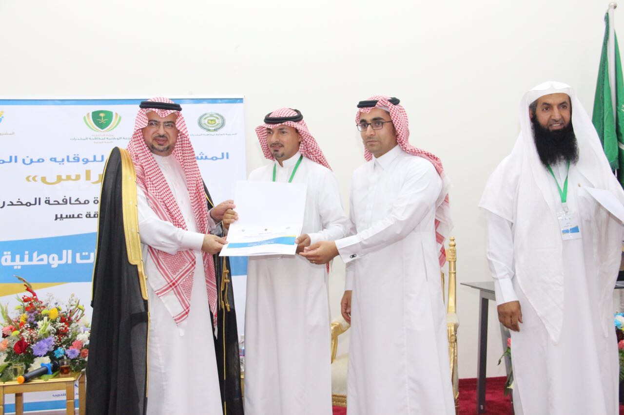 وتم تسليم المتدربين شهادات معتمدة من اللجنة الوطنية لمكافحة المخدرات كما قدم الرائد، بدر الأحمري، مدير مكافحة المخدرات بمحايل عسير درعًا تذكاريًا للمحافظ.