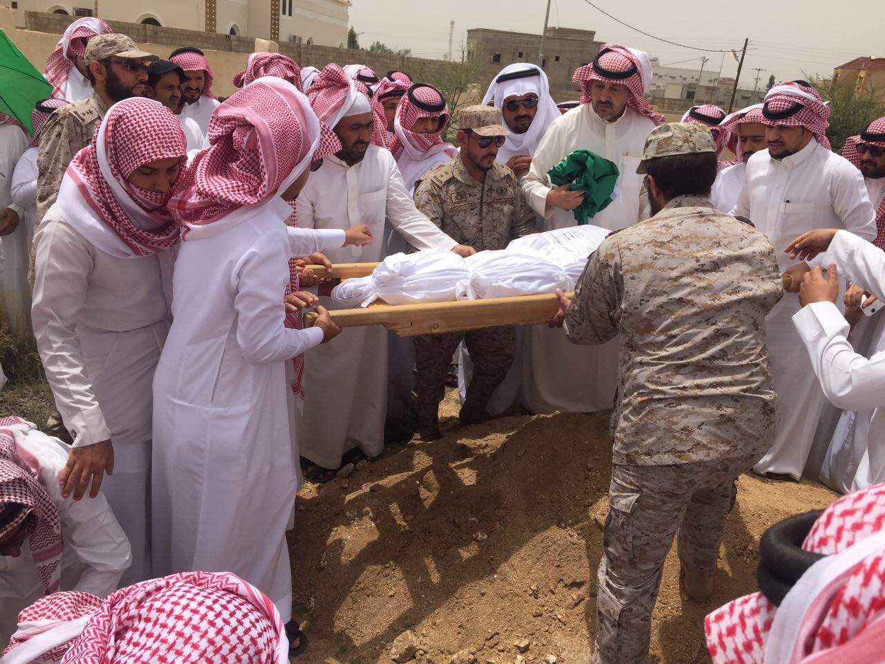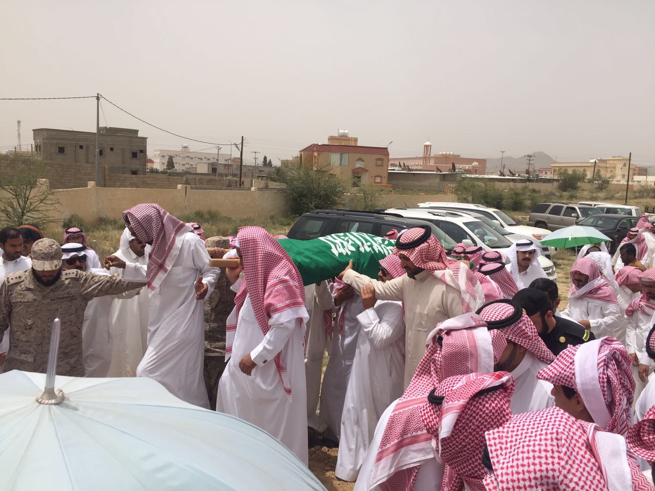 وتقدم محافظ أحد رفيدة، سعيد بن علي بن دلبوح، المصلين بحضور قائد المنطقة الجنوبية اللواء ركن عبدالله بن صالح القفاري، ومدير مركز الرونة الشيخ طلال مبارك آل مشهور، مئات المصلين من المدنيين والعسكريين خلال صلاة الجنازة على جثمان الشهيد، في جامع ابن صمان بمحافظة أحد رفيدة، فيما ووري جثمانه الثرى في مقبرة حي لزمة في المحافظة.