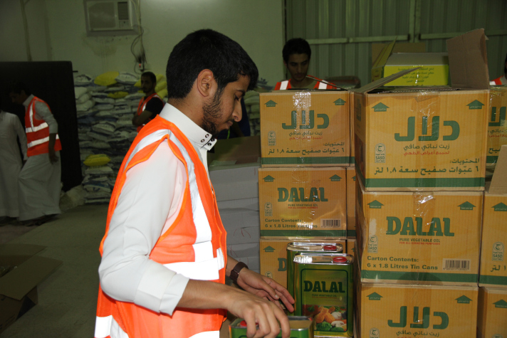 بالصور.. عون التطوعي يوزع 400 سلة رمضانية في القصيم